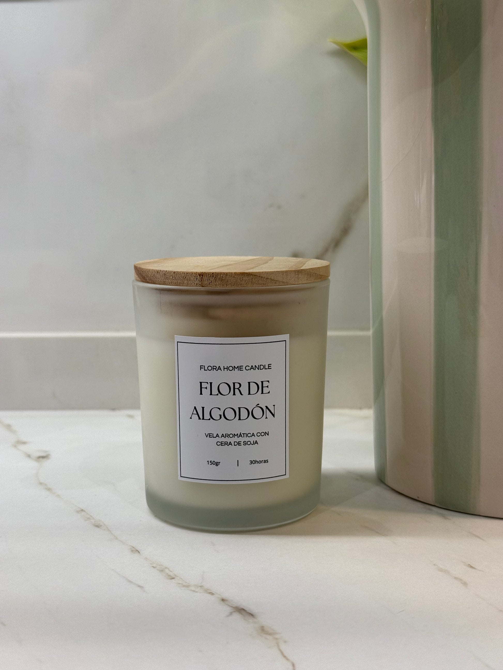 Delicada, elegante y reconfortante. Nuestra vela de flor de algodón envuelve tu hogar en una fragancia suave y pura, como una caricia en el aire.